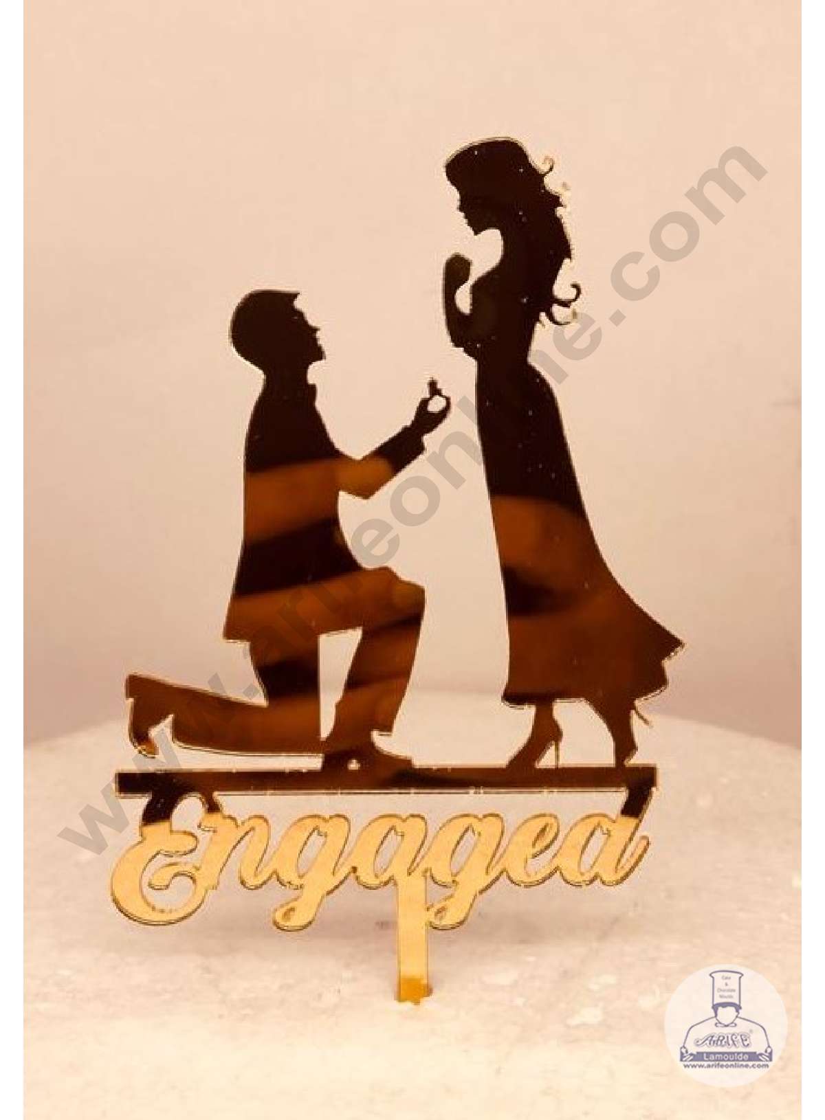 CAKE DECOR™ 5 inch Acrylic Cute Couple Engaged Cutout Cake Topper Cake Decoration Dessert Decoration (SBMT-3033-G)