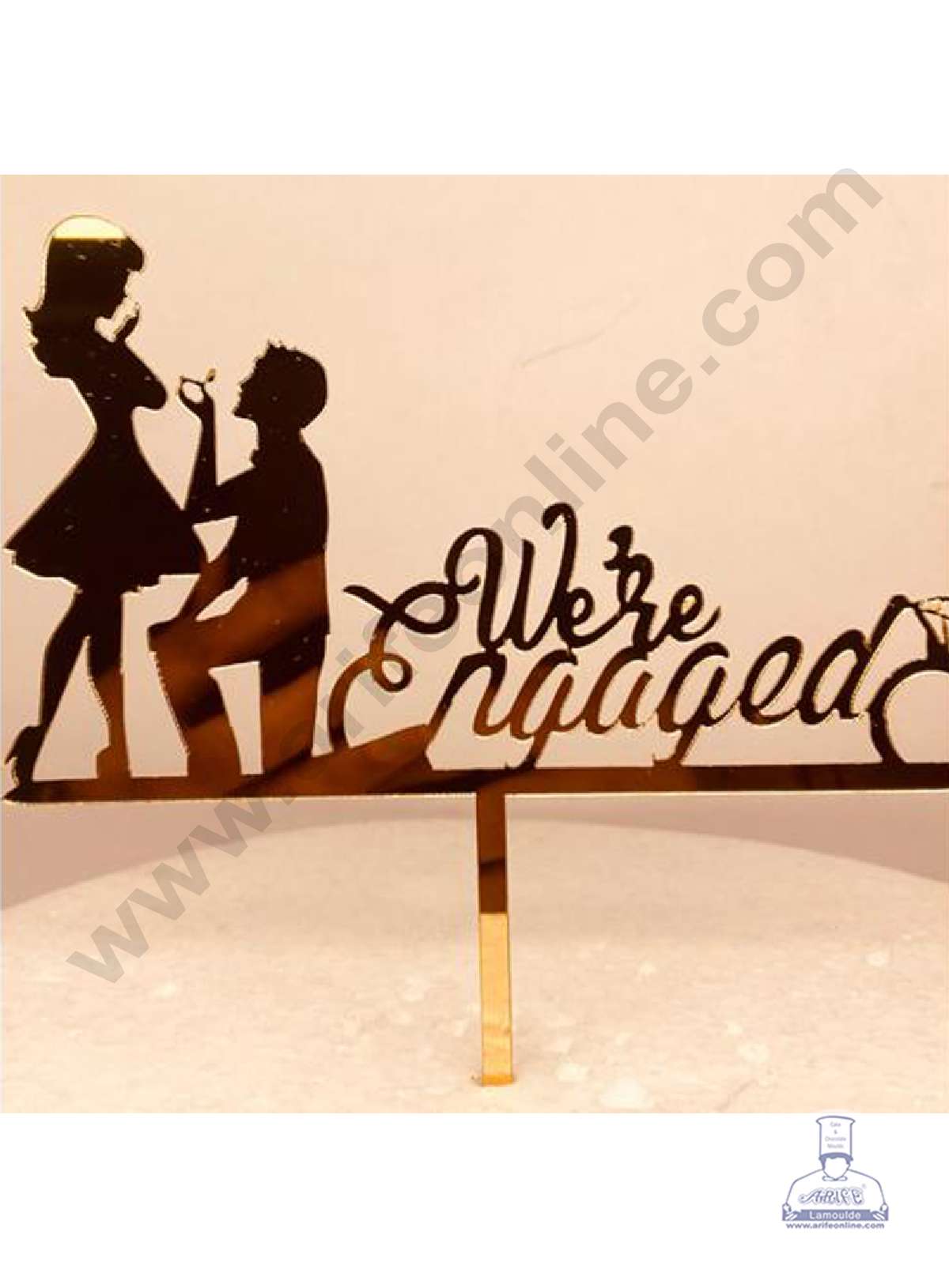CAKE DECOR™ 5 inch Acrylic Cute Couple We’re Engaged with Ring Cutout Design Cake Topper Cake Decoration Dessert Decoration (SBMT-3032-G)