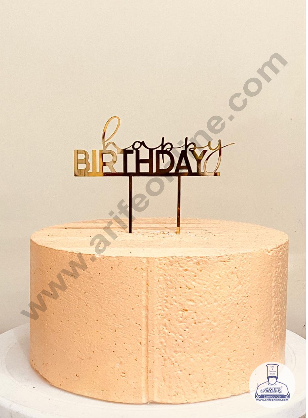 CAKE DECOR™ 5 inch Acrylic Gold Mirror Finishing Acrylic Stylish Happy Birthday Cake Topper Design-3 ( SBMT-1238 )