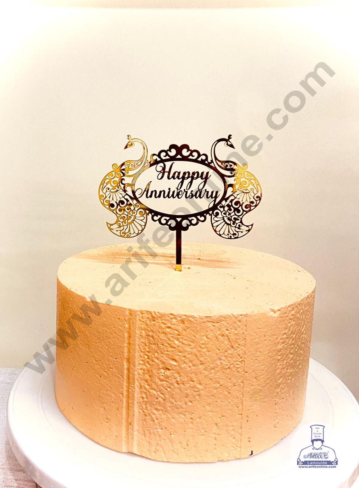 CAKE DECOR™ 5 inch Acrylic Happy Anniversary with peacock Cutout in Oval Frame Cake Topper Cake Decoration Dessert Decoration ( SBMT-1213) Gold Acrylic Happy Anniversary with peacock Cutout in Oval Frame Cake Topper Celebrate your Ocassion with this adorable cake topper. Perfect for photos to remember your special day. No more squiggly writing with icing…