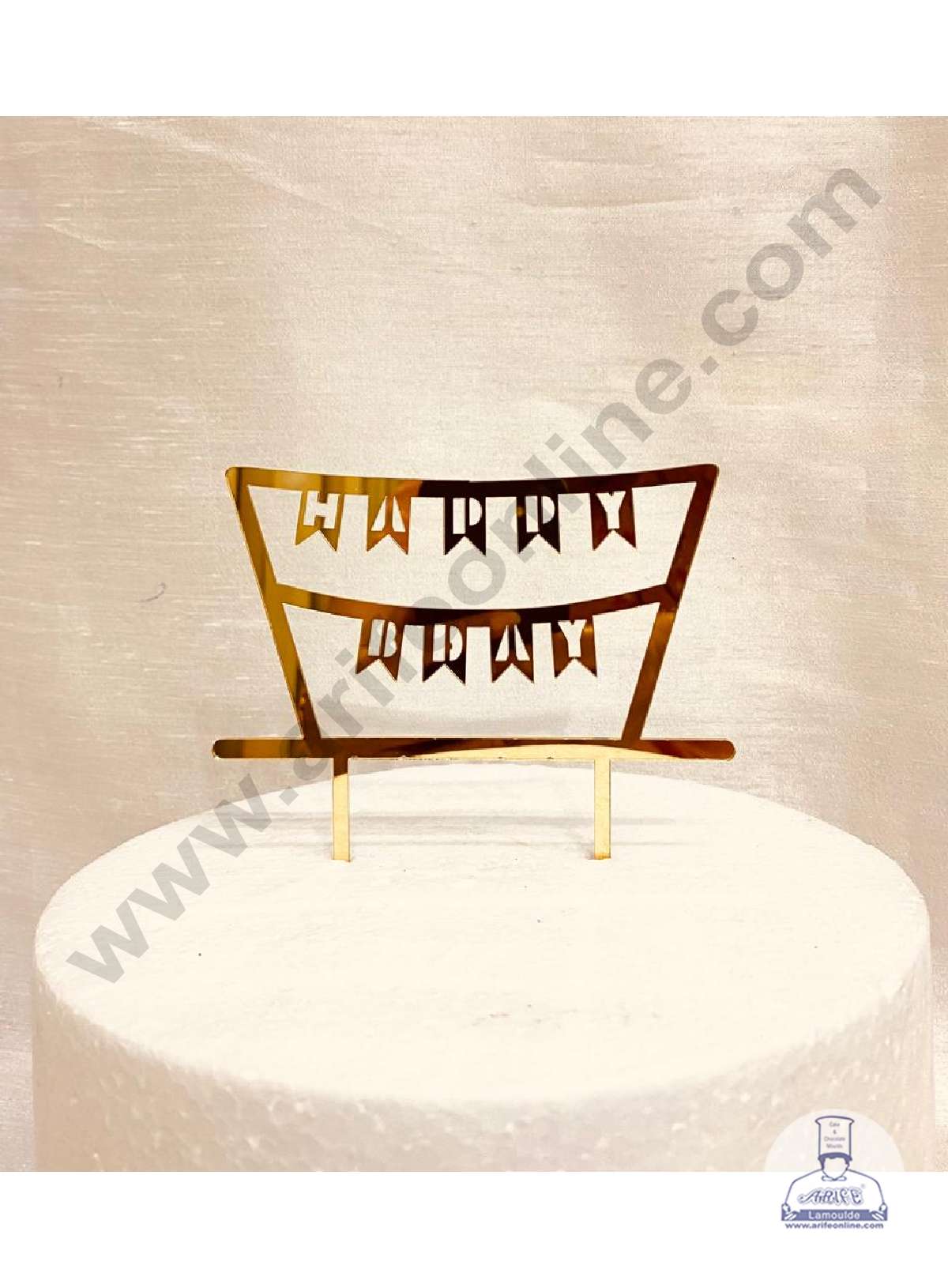 Gold Acrylic Happy BDay Banner Style Cake Topper.