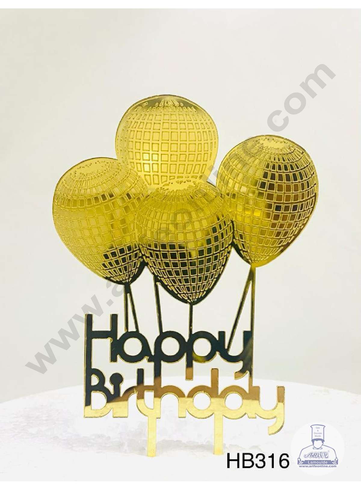 CAKE DECOR™ 5 inch Acrylic Happy Birthday Balloon Cake Topper Cake Decoration Dessert Decoration (SBMT-1002) Gold Acrylic Happy Birthday Balloon Cake Topper. Celebrate your Ocassion with this adorable cake topper. Perfect for photos to remember your special day. No more squiggly writing with icing and spelling mistakes on your cake. Beautiful cakes deserve this beautifully…