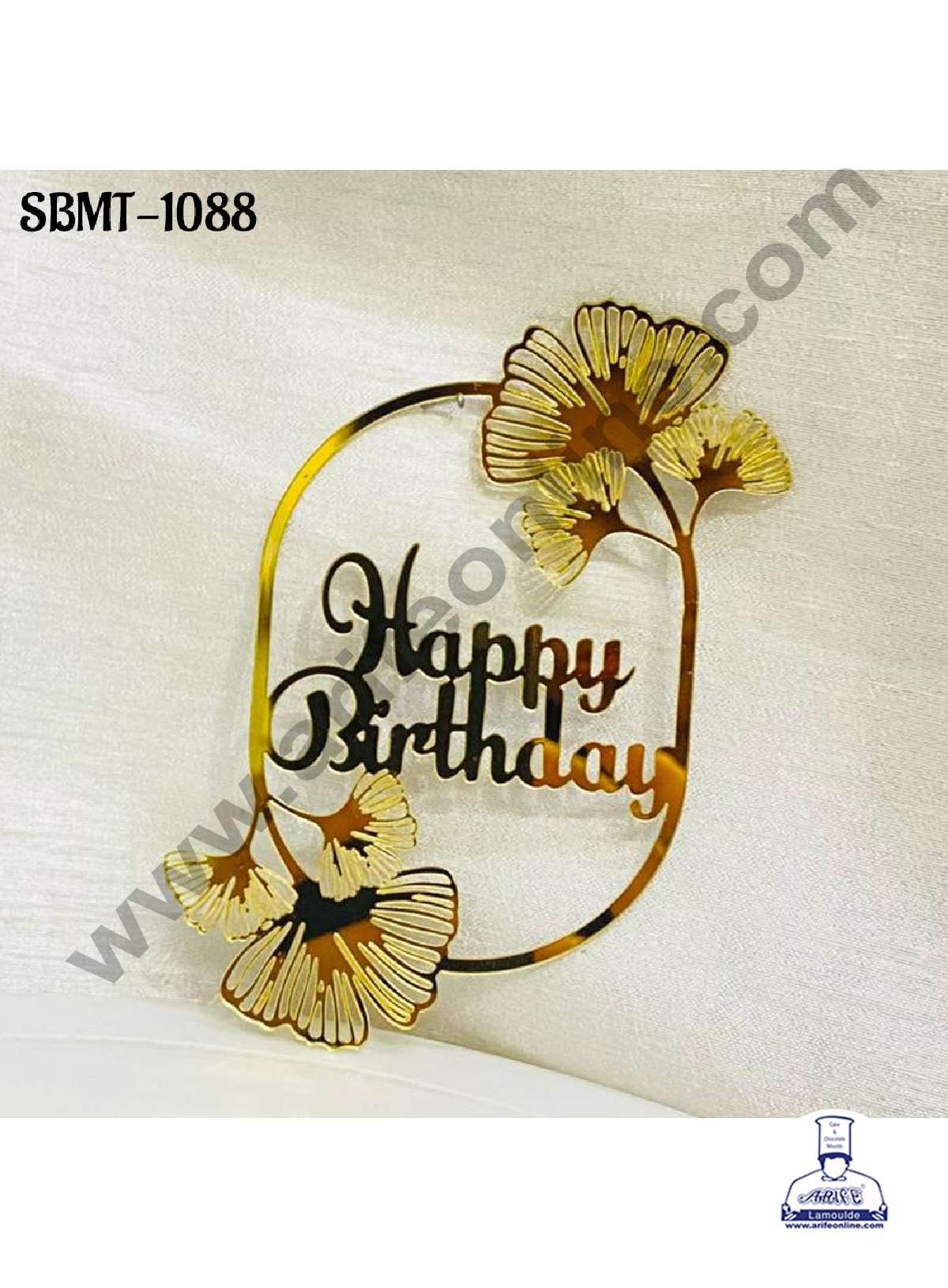 CAKE DECOR™ 5 inch Acrylic Happy Birthday in Ginkgo Leaf Cutout Frame Cake topper (SBMT-1088)
