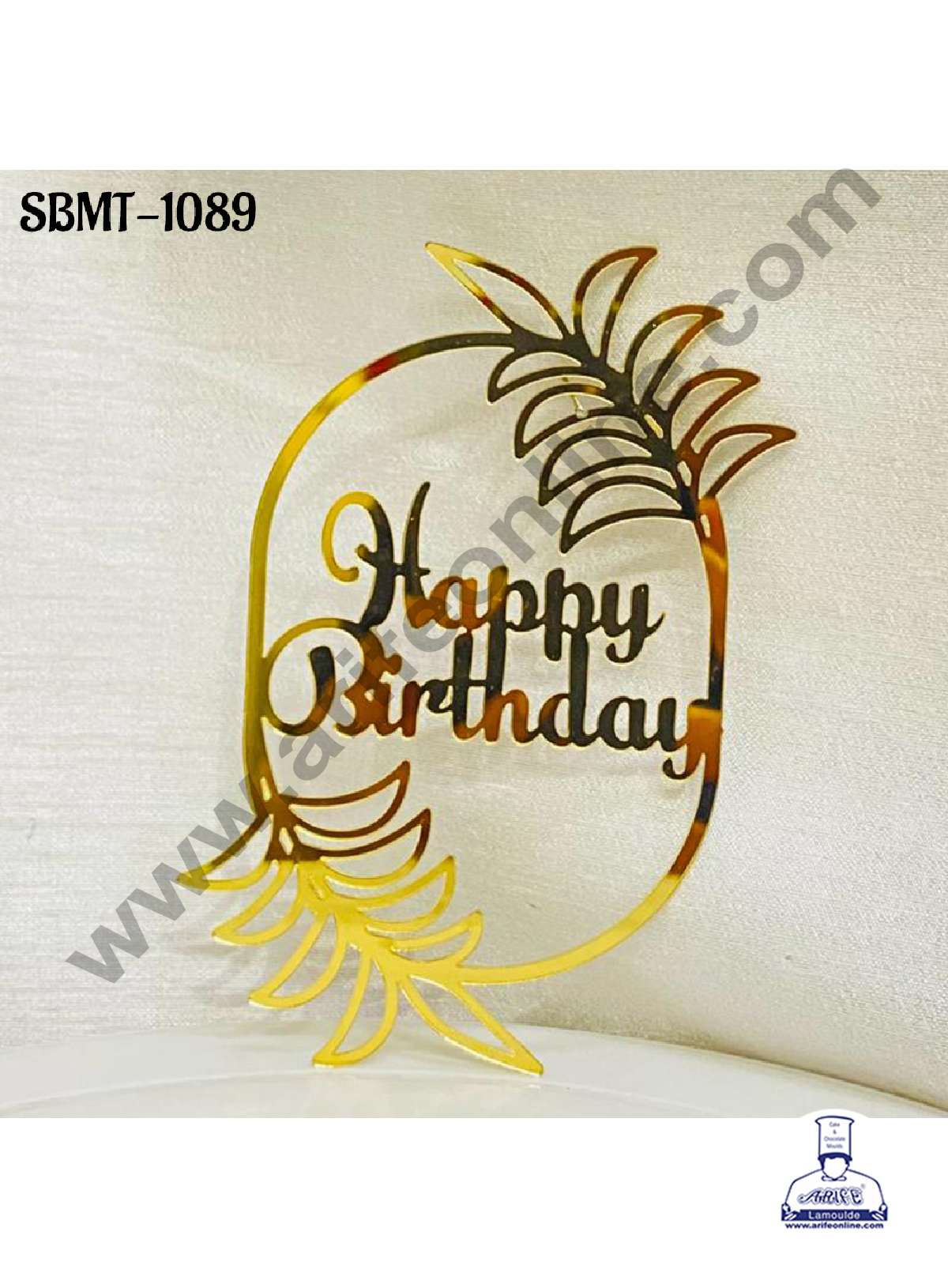 CAKE DECOR™ 5 inch Acrylic Happy Birthday in Leaf Cutout Frame Cake topper (SBMT-1089) Gold Acrylic Happy Birthday in Leaf Cutout Frame Cake Topper. Perfect for any occasion. Many designs including Happy Birthday, and more. Make every birthday celebration extra special with this elegant 5-Inch Birthday Cake Topper . Designed to be the perfect finishing…