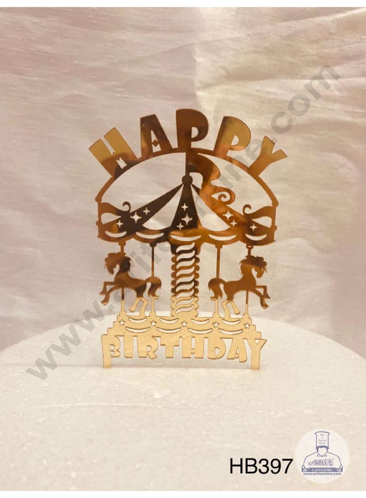 CAKE DECOR™ 5 inch Acrylic Happy Birthday Merry Go Round Horse Cutout Cake Topper Cake Decoration Dessert Decoration (SBMT-1031) Gold Acrylic Happy Birthday Merry Go Round Horse Cutout Cake Topper. Celebrate your Ocassion with this adorable cake topper. Perfect for photos to remember your special day. No more squiggly writing with icing and spelling mistakes…