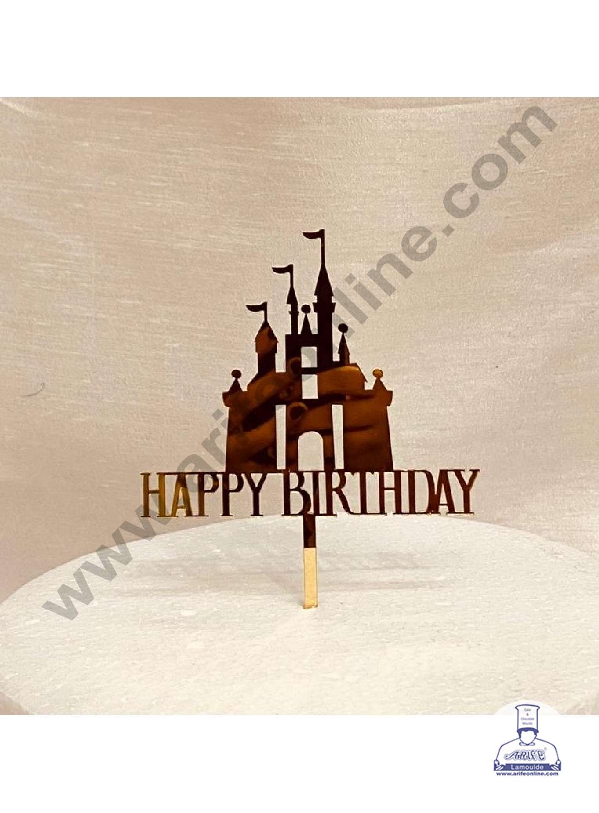 Gold Acrylic Happy Birthday with Castle Cake Topper.