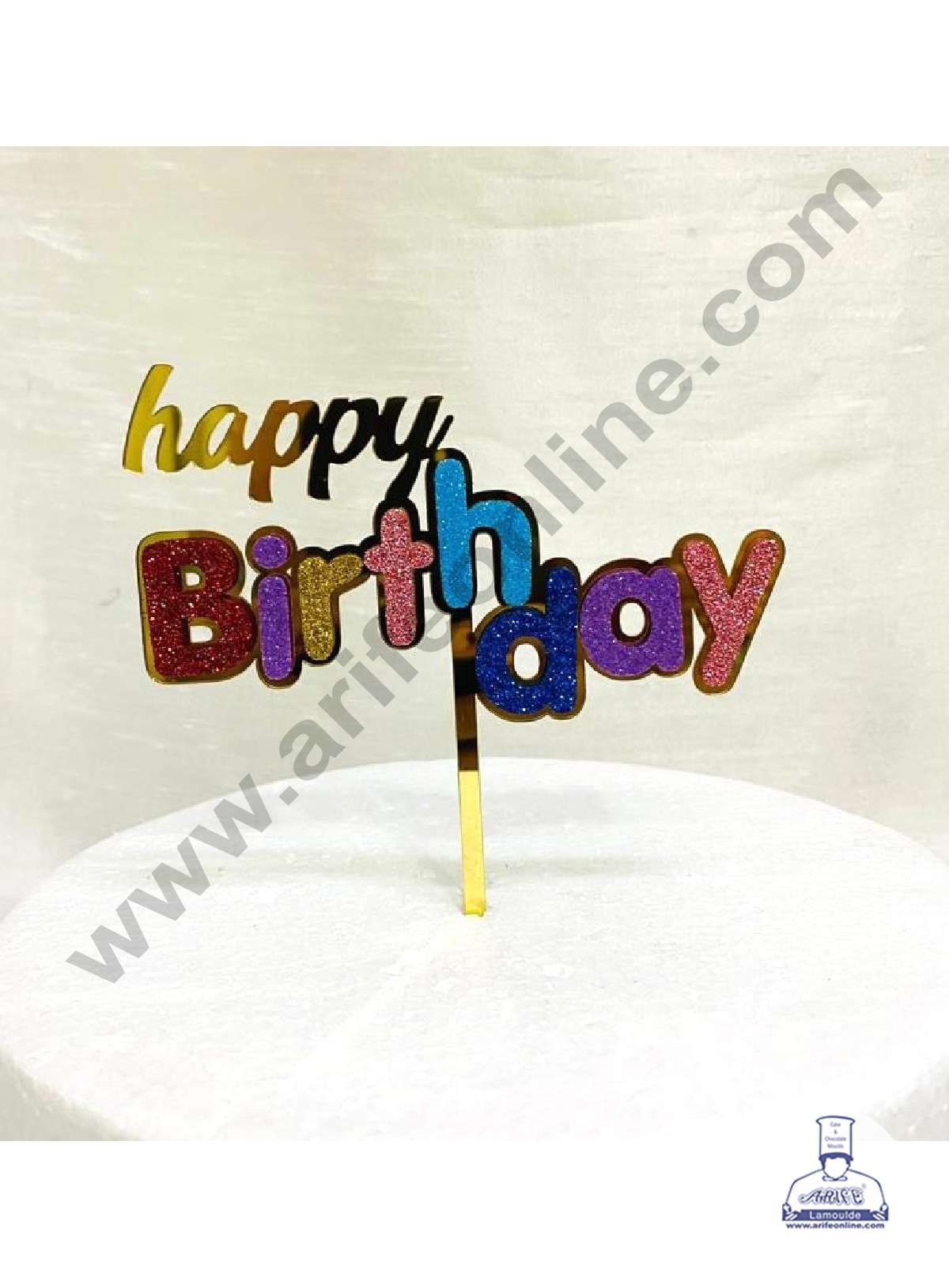 CAKE DECOR™ 5 inch Acrylic Happy Birthday with MultiColor Glitter Cake Topper Cake Decoration Dessert Decoration (SBMT-G-4016-G)