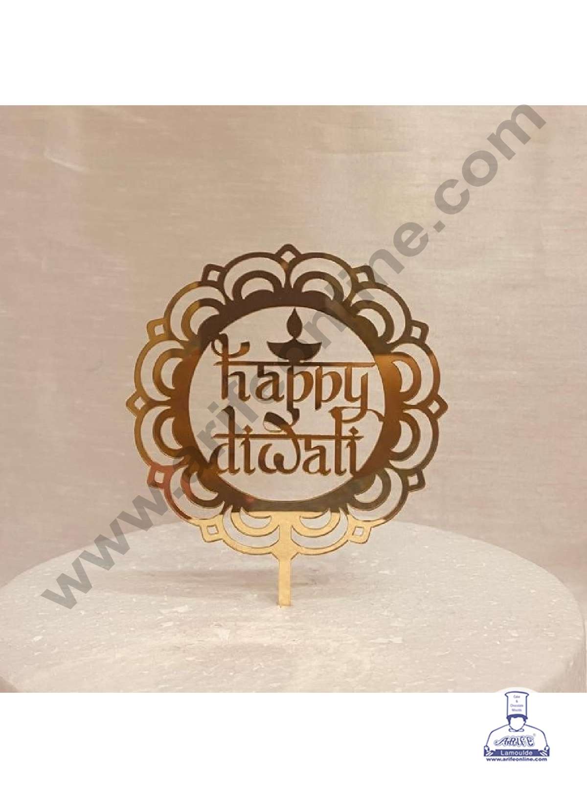 CAKE DECOR™ 5 inch Acrylic Happy Diwali in Unique Style Frame with Diya Cutout Cake Topper Cake Decoration Dessert Decoration (SBMT-5009)