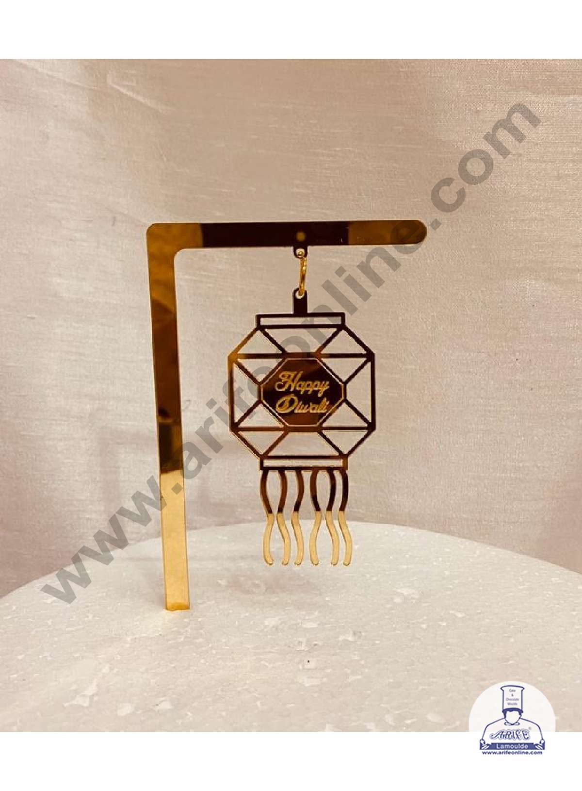 CAKE DECOR™ 5 inch Acrylic Happy Diwali with Hanging Kandil Cake Topper Cake Decoration Dessert Decoration (SBMT-5019)