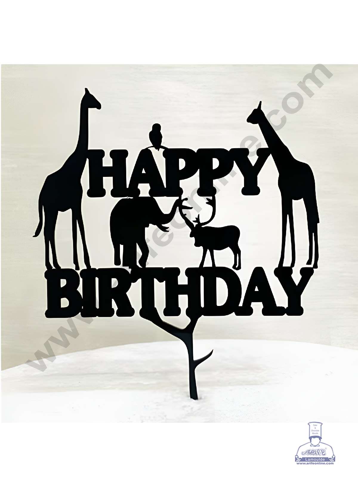 CAKE DECOR™ 5 inch Black Acrylic Happy Birthday Animal Theme Cake Topper Cake Decoration Dessert Decoration (SBMT-1069-B)
