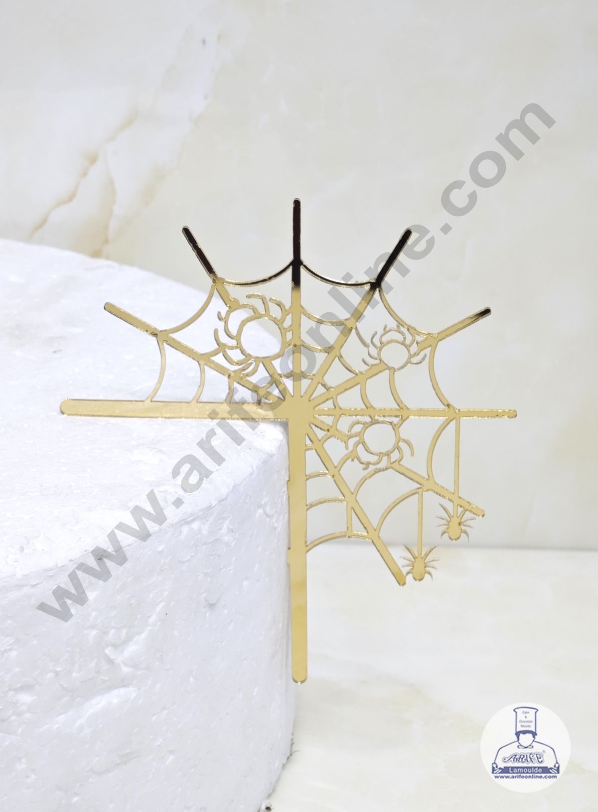 CAKE DECOR™ 5 inch Golden Acrylic Spider-Web with Spiders Cake Topper Cake Decoration Dessert Decoration
