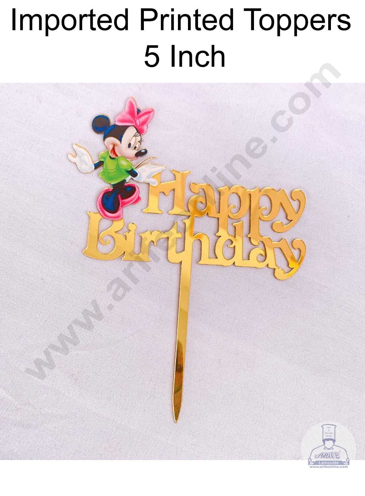 CAKE DECORβ’ 5 Inch Imported Printed Cake and Cupcake Topper – Happy Birthday Minnie Mouse Theme (SBMT-IMP-008)