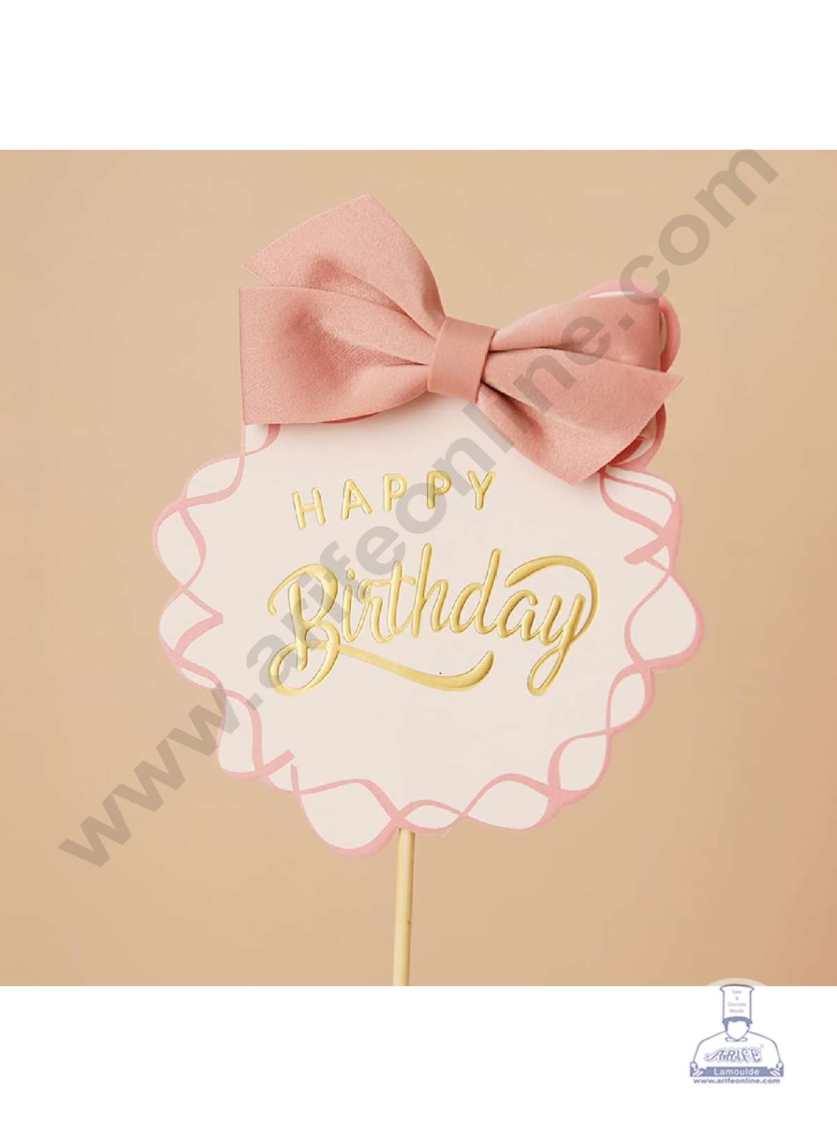 CAKE DECORβ„’ 5 Inch Imported Printed Cake and Cupcake Topper – Happy Birthday Pink Bow (SBMT-IMP-031)