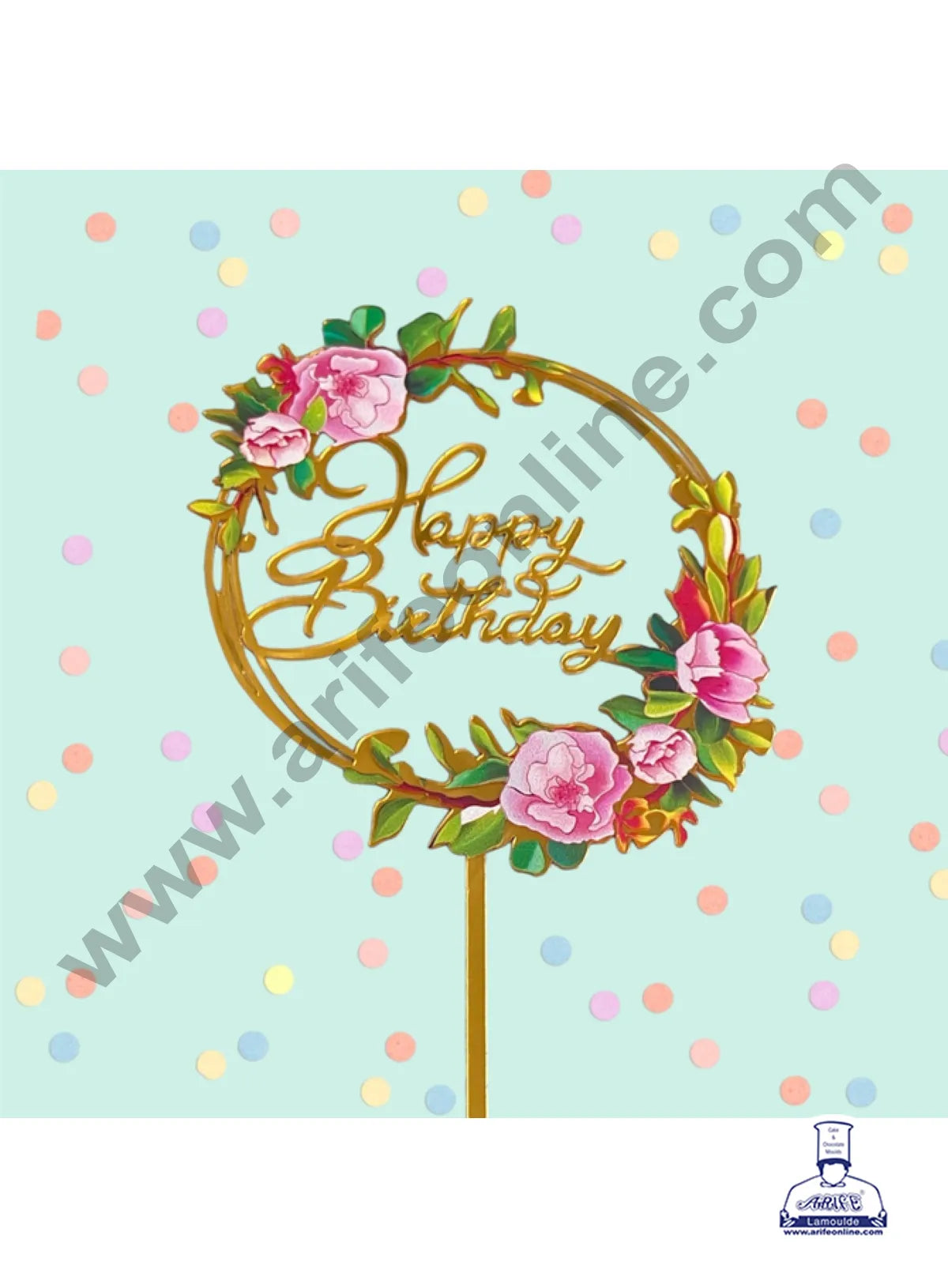 CAKE DECORβ’ 5 Inch Imported Printed Cake and Cupcake Topper – Happy Birthday Round Floral Theme -01