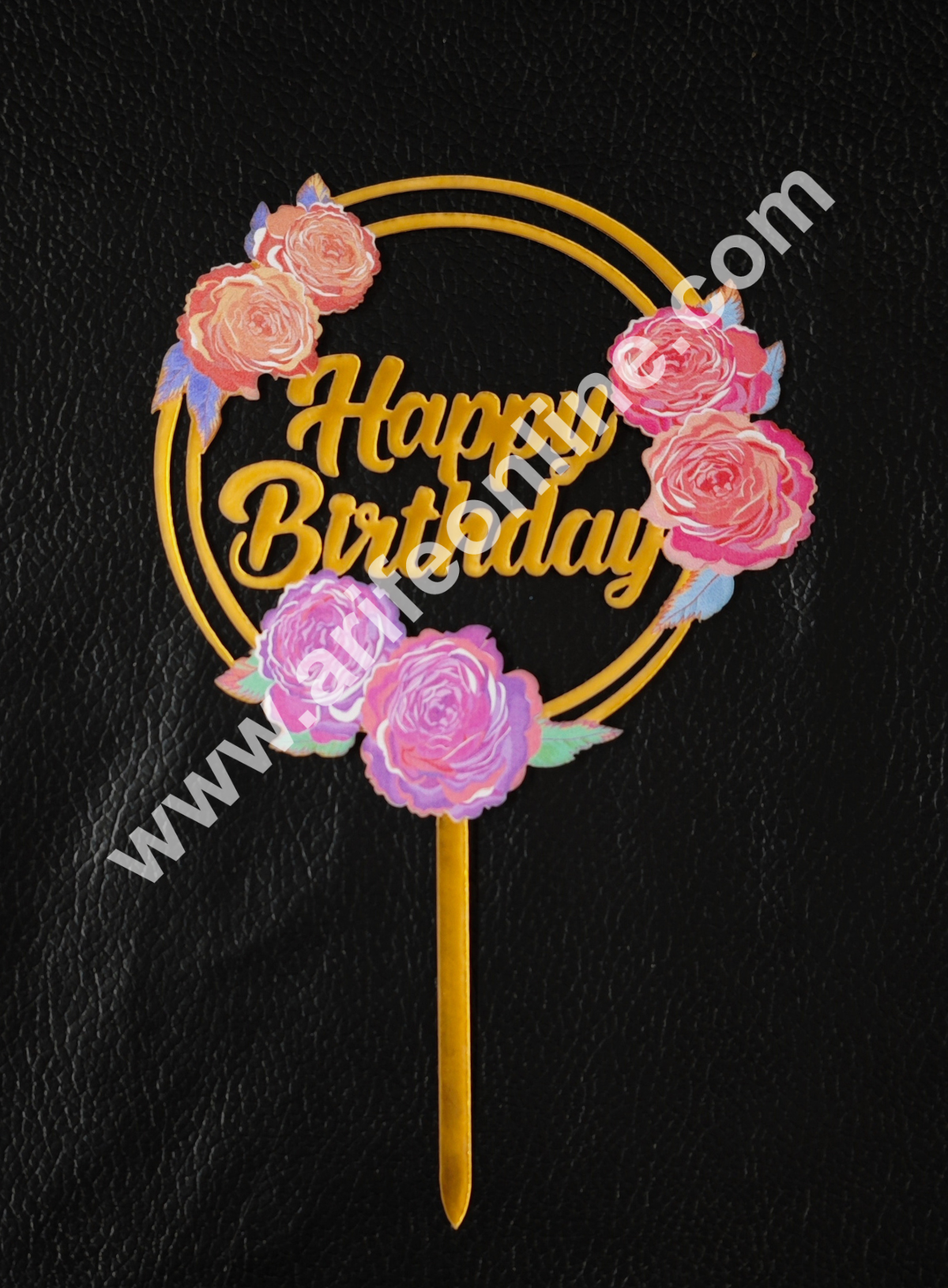 CAKE DECORβ’ 5 Inch Imported Printed Cake and Cupcake Topper – Happy Birthday Round Rose Flowers -06
