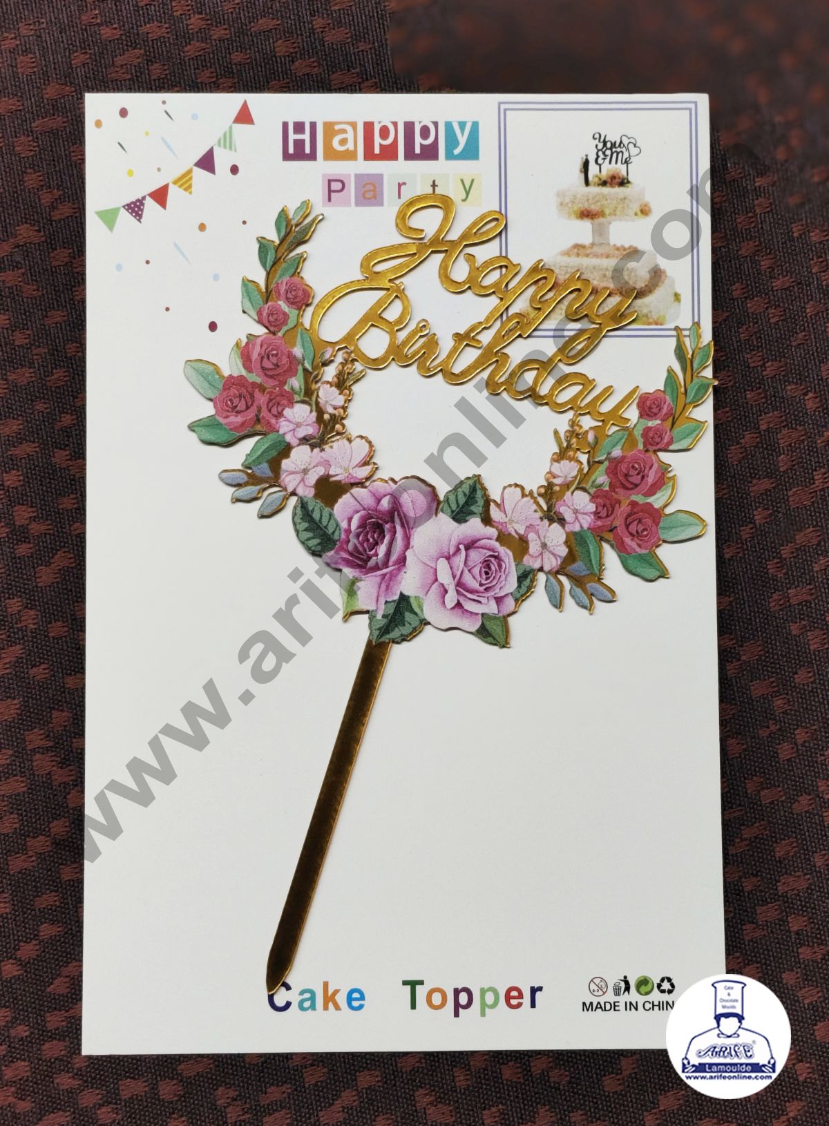 CAKE DECORβ’ 5 Inch Imported Printed Cake and Cupcake Topper – Happy Birthday Round Rose Flowers -08