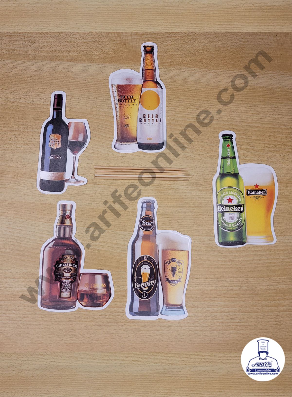 Cake Decor 5 pcs Beer Bottles Theme Paper Topper For Cake And Cupcake