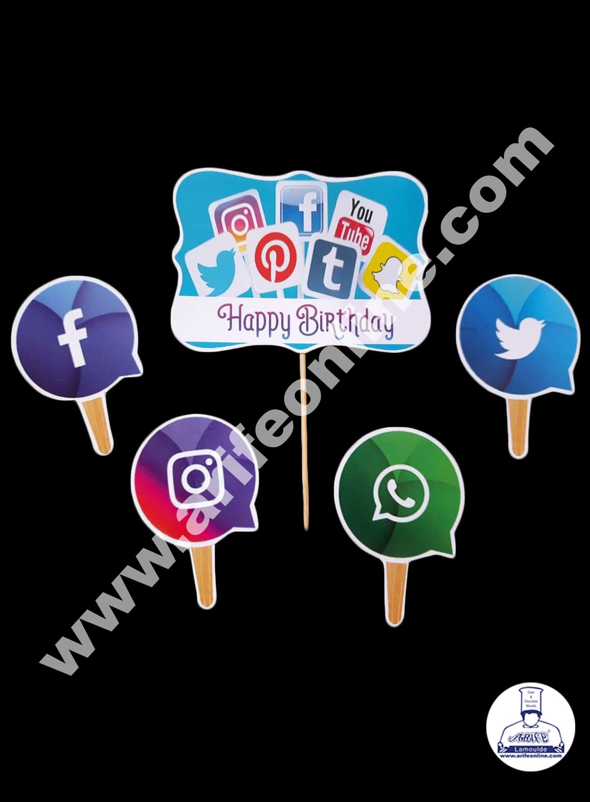 Cake Decor 5 pcs Happy Birthday Social Media Theme Paper Topper For Cake And Cupcake