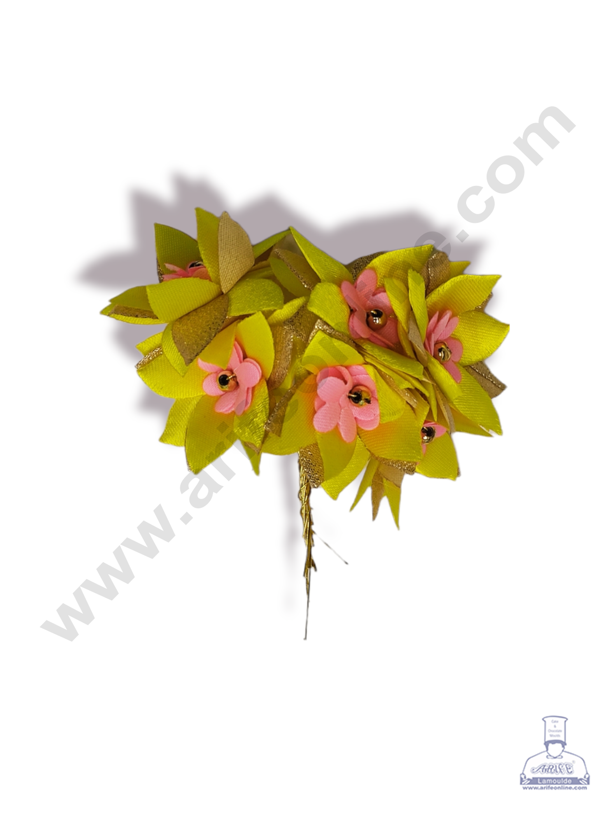 Cake Decorβ’ Medium Star Flower Artificial Flower For Cake Decoration β Pink Yellow & Golden Petal ( 1 Bunch )