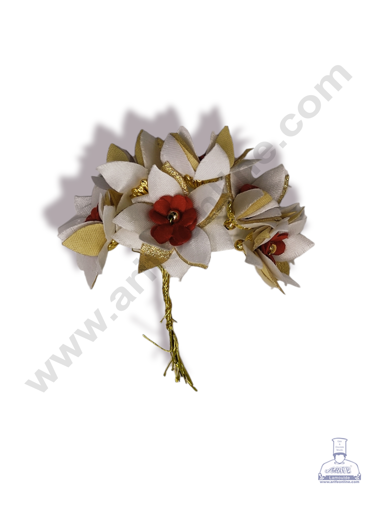 Cake Decor™ 5 Petal Star Flower With Gold Bead Bunch of 6 Pcs – Red White & Golden Petal