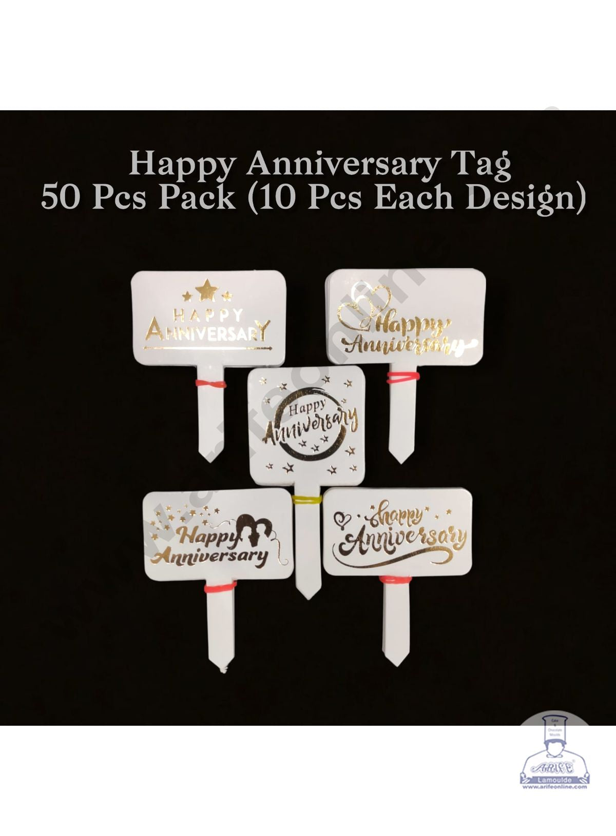 Cake Decor 50 pcs White Golden Happy Anniversary Mix Designs Paper Topper For Cake And Cupcake