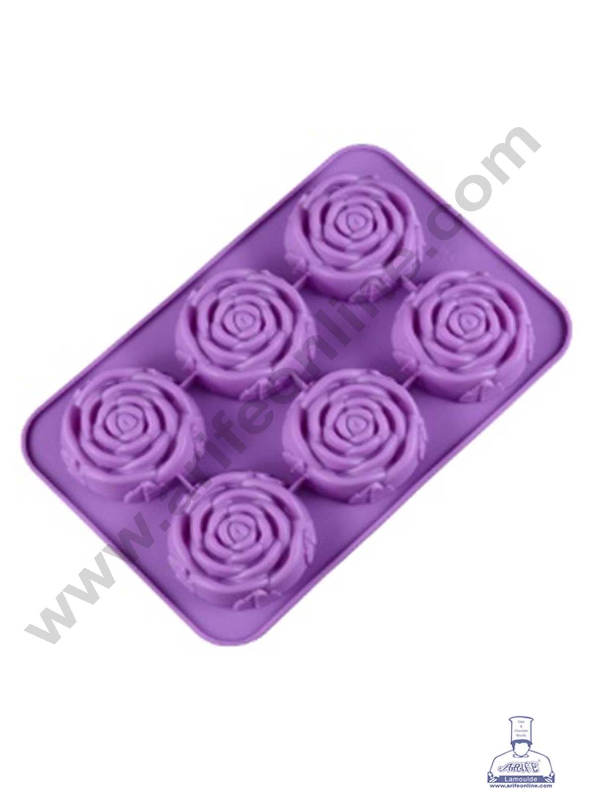 CAKE DECOR™ 6 Cavity Big Rose Shape Silicon Muffin Mould Silicon Cupcake Mould (SBSM-368)