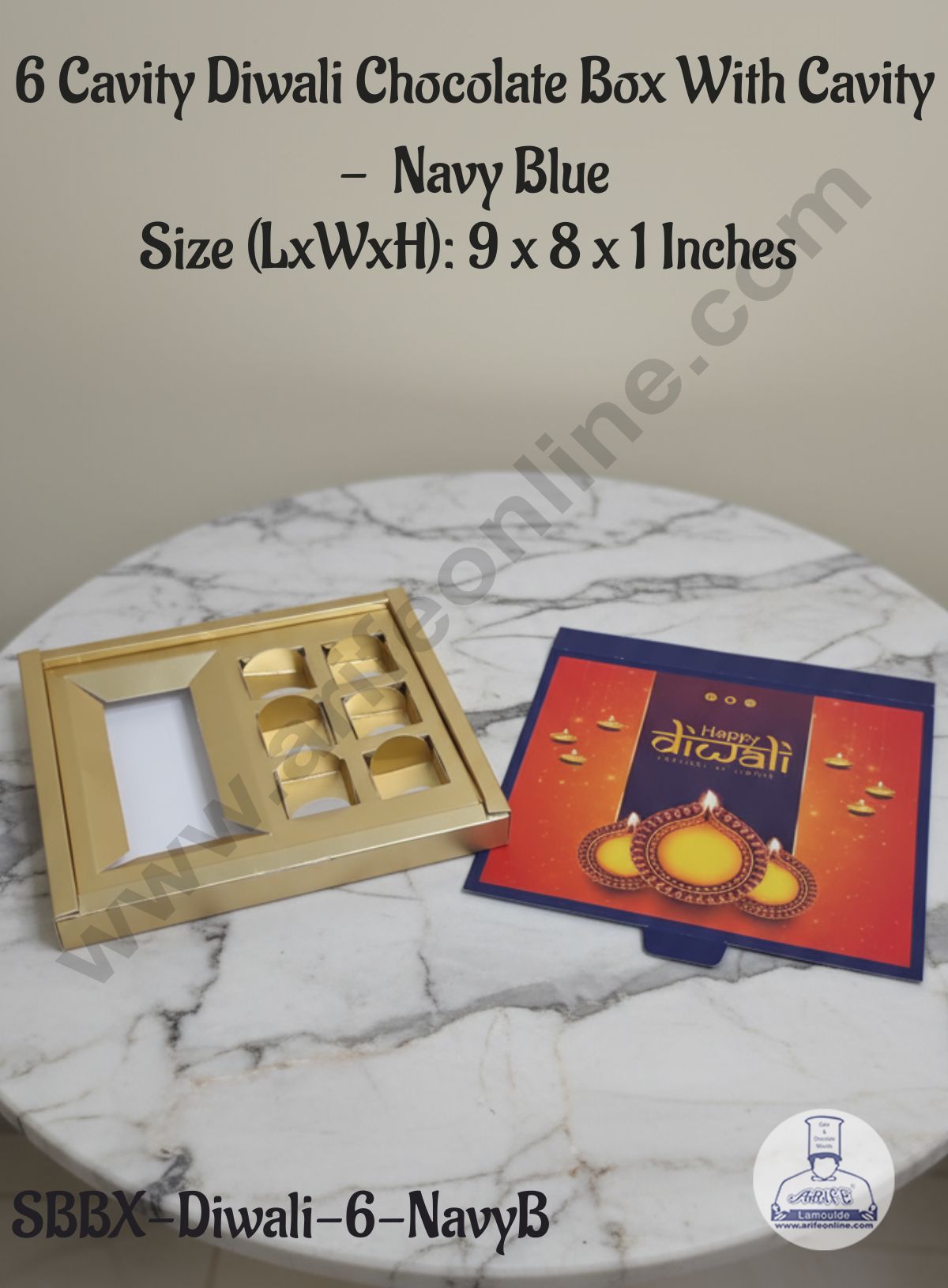 CAKE DECOR™ 6 Cavity Diwali Chocolate Box With Cavity – Navy Blue│ SBBX-Diwali-6-NavyB│ 9 x 8 x 1 Inch │1 Piece Pack │
