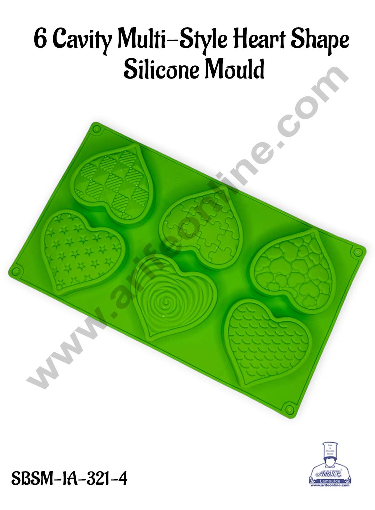 CAKE DECOR™ 6 Cavity Multi-Style Heart Shape Silicone Mould | Jelly & Soap Mould | Baking Mould – SBSM-IA-321-4