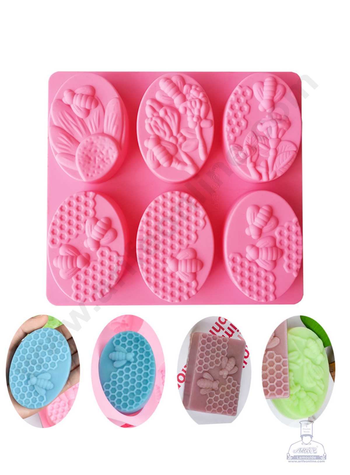 CAKE DECOR™ 6 Cavity Oval Bee Honeycomb Design Silicone Moulds for Soaps and Chocolate Jelly Desserts Mould
