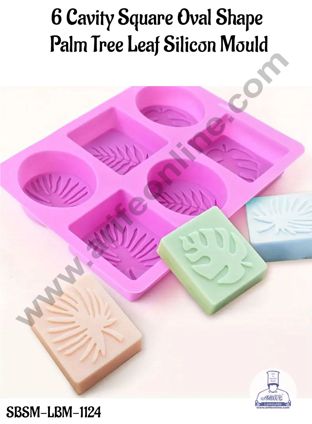 CAKE DECORβ’ 6 Cavity Square Oval Shape Palm Leaf Silicone Chocolate Mould (SBLBM-1124)