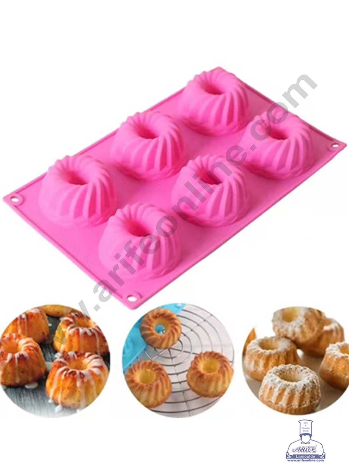 CAKE DECORβ’ 6 Cavity Swirl Bundt Shape Silicone Mould | Muffin Mould | Silicon Cupcake Mould Perfect for Chocolates, Candies & Mini Desserts(SBSM-182)