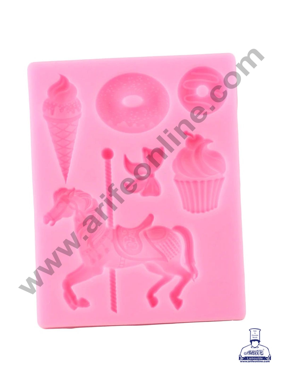 Cake Decor 6 Cavity Unicorn Cupcake Ice Cream And Bow Silicone Mold for Cake Decoration