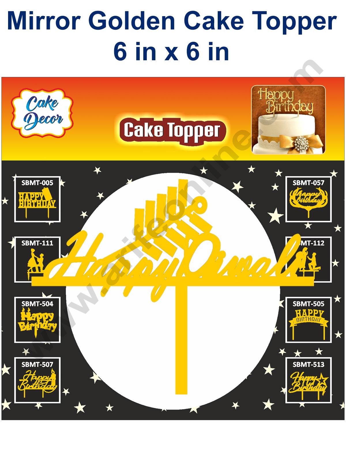 Cake Decor 6 inch Mirror Finshing Acrylic Cake Topper Happy Diwali With Pataka