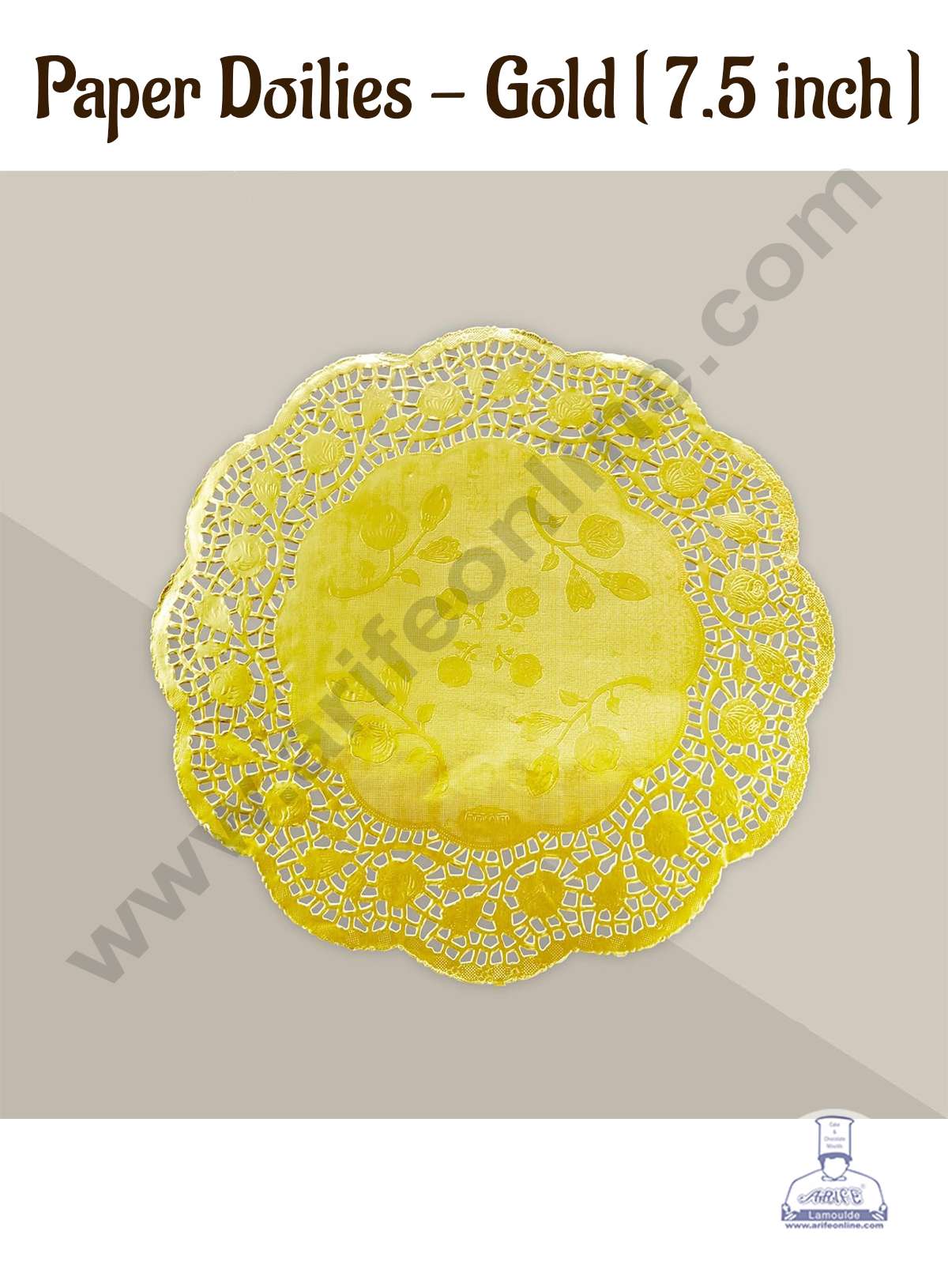 CAKE DECOR™ 7.5 inch Paper Doilies | Round Placemats | Decorative Accessories | Disposable Paper Mats – Gold (100 pcs Pack)