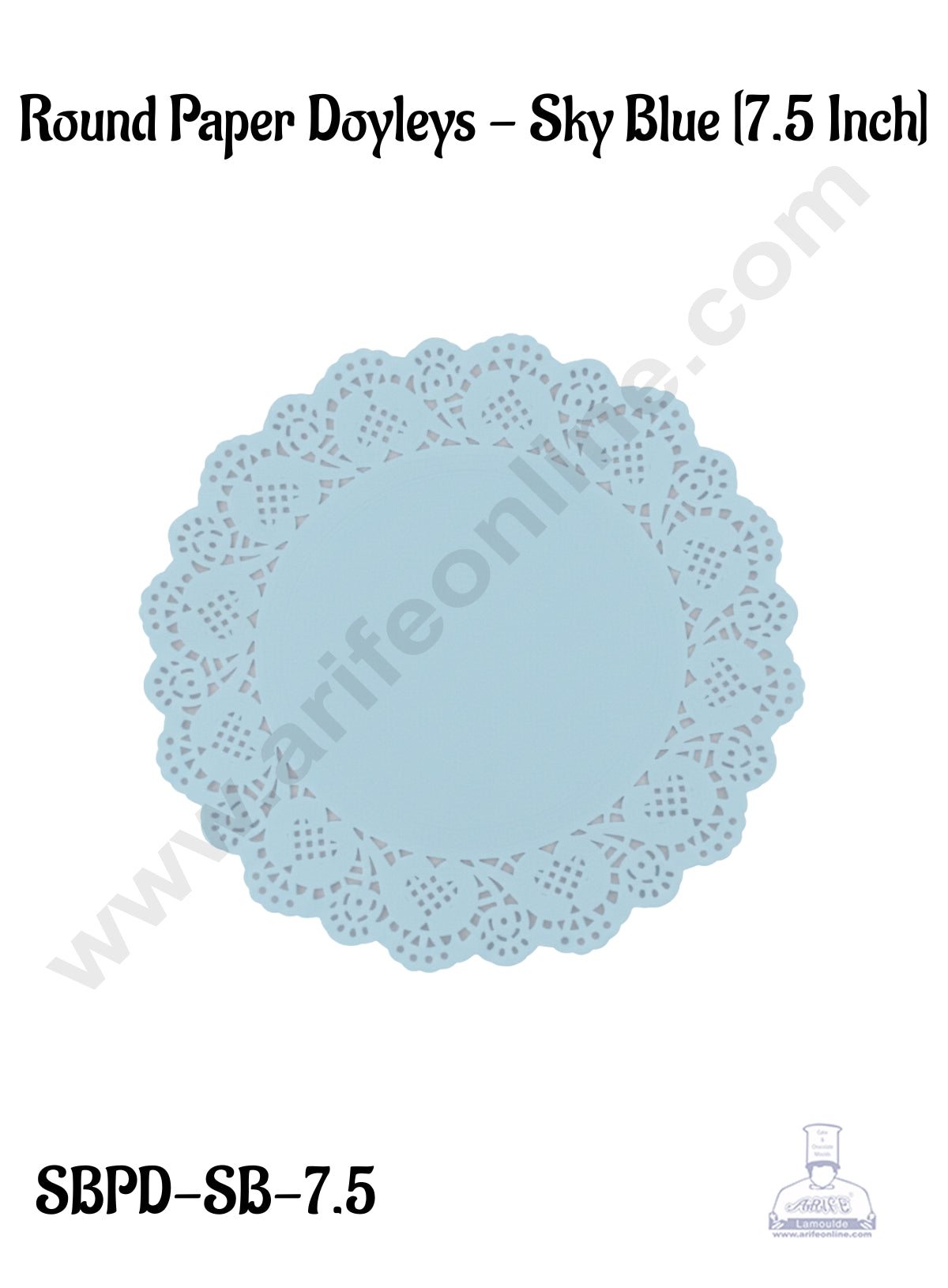 CAKE DECOR™ 7.5 inch Paper Doilies | Round Placemats | Decorative Accessories | Disposable Paper Mats – Sky Blue (100 pcs Pack)