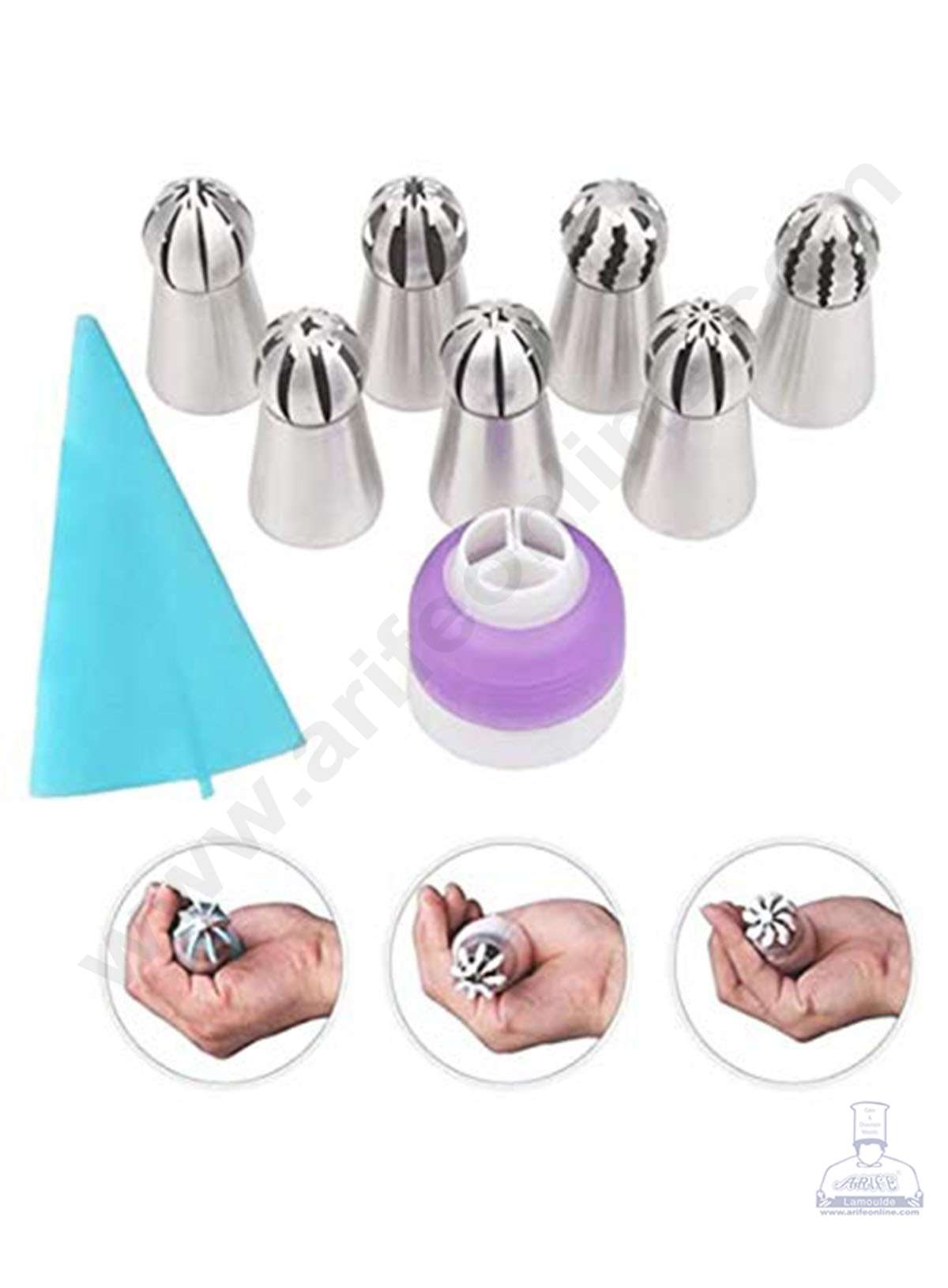 Cake Decorβ’ 7 Pcs Medium Ball Tip Balloon Russian Nozzle 1 Coupler and 1 Silicon Piping Bag Set Pastry Tips Cupcake Cake Decorating Nozzle SBYG-13