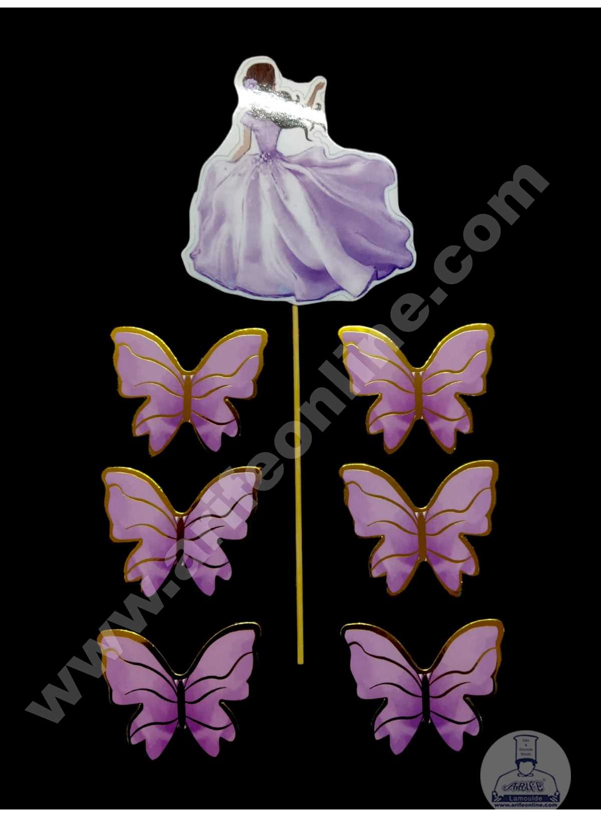 CAKE DECORβ’ 7 pcs Purple Lady with Butterfly Theme Paper Topper For Cake And Cupcake SBMT-PT-114