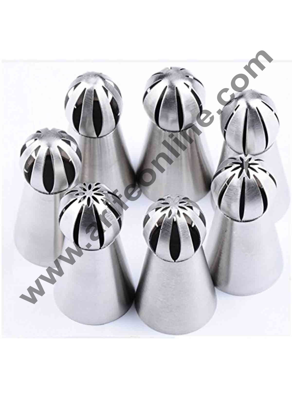 Perfect for making your own beautiful and unique cakes,puff,or pastry Material: 304 stainless steel. Made of food grade material. Use Seamless welding technology to make. Easy to keep clean and use 7Pcs Sphere Ball Russian Piping Tips Icing Nozzles Classic appearance,small and exquisite. Made of 304 stainless steel food grade material, dishwasher safe. There are 7pcs different patterns cake tips,provide you more great ideas,enjoy your family day with your children at weekends. Taking to precise cutting technology, to offer smooth and easy experience for the user, and to create the perfect shapes easily. Each one of them allows you to decorate your cakes, cupcakes, and desserts with dainty, impressive patterns. Just squeeze and pull and there you have it! Let your imagination run wild with this icing nozzles to decorate your cakes and ice creams. What’s In The Box 7pcs Sphere Icing Piping Nozzles