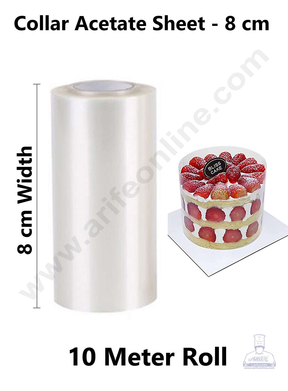 Cake Decor™ 8 cm Collars Acetate Sheet Roll Clear Cake Pull Me Cake Strips Transparent Chocolate Mousse Collar Surrounding Edge Decorating (8cm x 10m Roll)