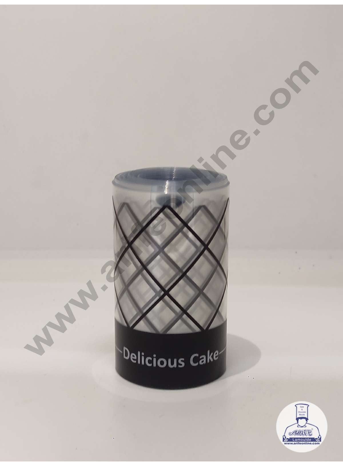 CAKE DECOR™ 8 cm Collars Acetate Sheet Roll Criss-Cross Stripes with Delicious Cake Border Printed Pull Me Cake Strips Chocolate Mousse Collar Surrounding Edge Decorating (8cm x 10m Roll) – Criss-Cross Stripes with Delicious Cake Border