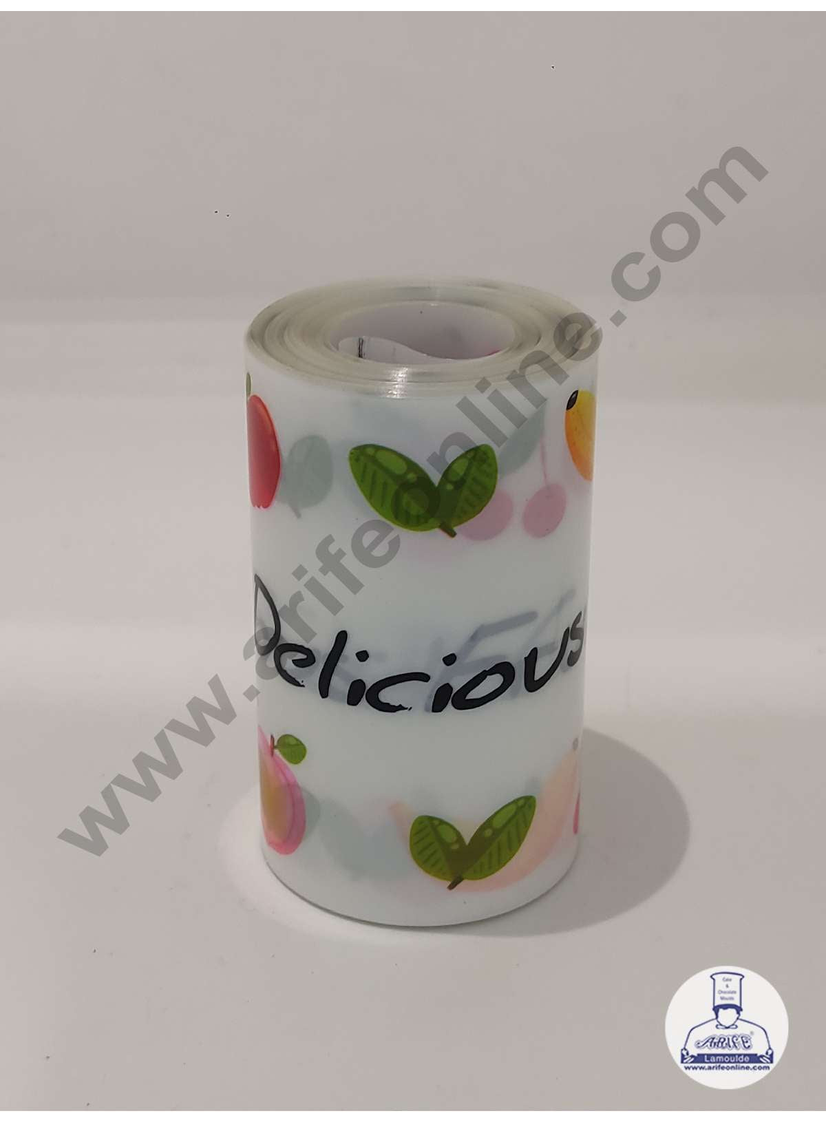 CAKE DECOR™ 8 cm Collars Acetate Sheet Roll Fruits with Delicious Fruit Cake Print Pull Me Cake Strips Chocolate Mousse Collar Surrounding Edge Decorating (8cm x 10m Roll) – Fruits with Delicious Fruit Cake Print
