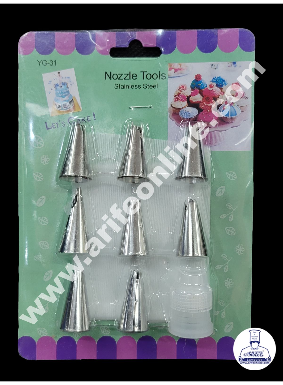 Cake Decor 8 Pcs Nozzle With 1 Coupler & 1 Piping Bag Set Pastry Tips Cupcake Cake Decorating Nozzle