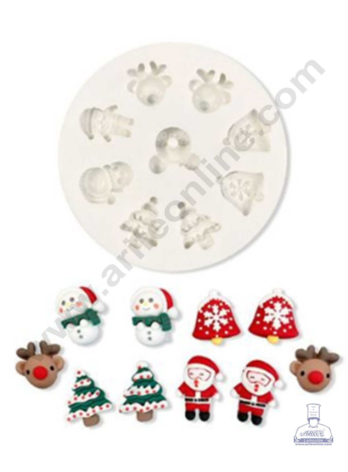 CAKE DECOR™ 9 Cavity Santa Clause Tree Bell Snow Man Shape Silicone Fondant Mold Silicon Marzipan Mould SBSP-DYF6548