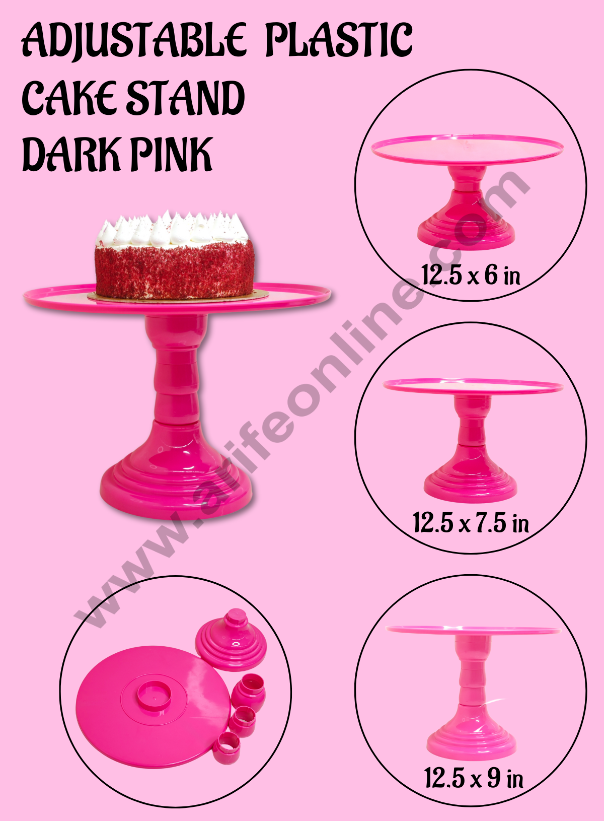 CAKE DECOR™ Adjustable Plastic Cake Stand | Cupcake Stand | Display Stand – Dark Pink