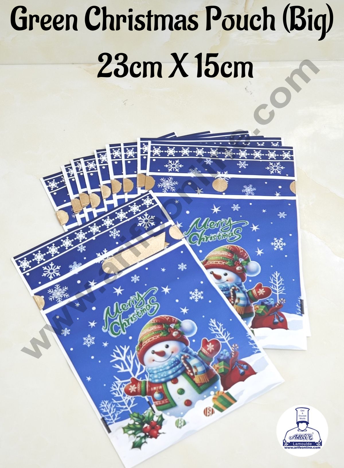 Cake Decor β’ Big Blue Color Christmas Theme Cookie pouch Plastic Drawstring Bag Treat With Ribbon | Design – 02 | Pack of 10 | (23cm X 15cm)
