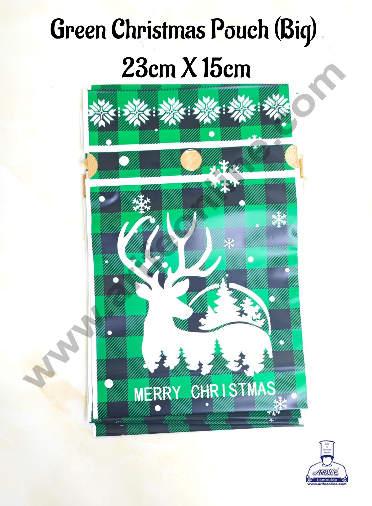 Cake Decor β’ Β Big Green Color Christmas Theme Cookie pouch Plastic Drawstring Bag Treat With Ribbon | Design – 12 | Pack of 10 | (23cm X 15cm) Description: size : 23cm X 15cm ~approx Package Including: 10 pcs Pretty design of Christmas Theme with a nice Golden ribbon for decoration,It is different and unique.…