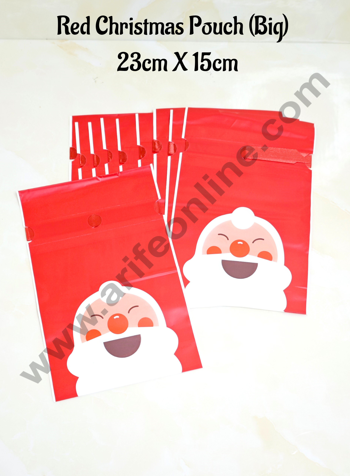 Cake Decor β„’ Big Red Color Christmas Theme Cookie pouch Plastic Drawstring Bag Treat With Ribbon | Design – 11 | Pack of 10 | (23cm X 15cm)