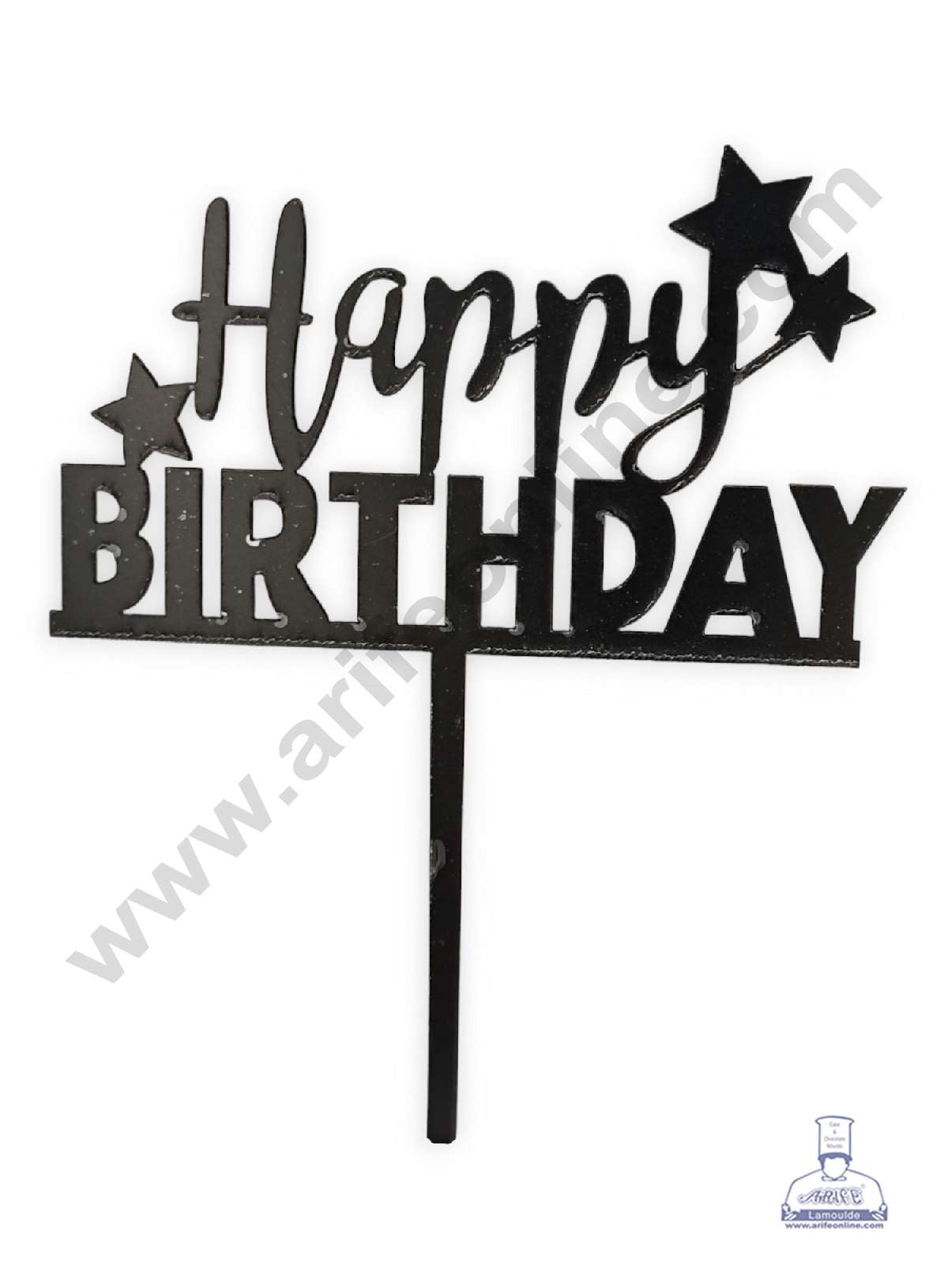CAKE DECOR™ Black Acrylic Happy Birthday with Stars Cake Topper SBMT-N-016