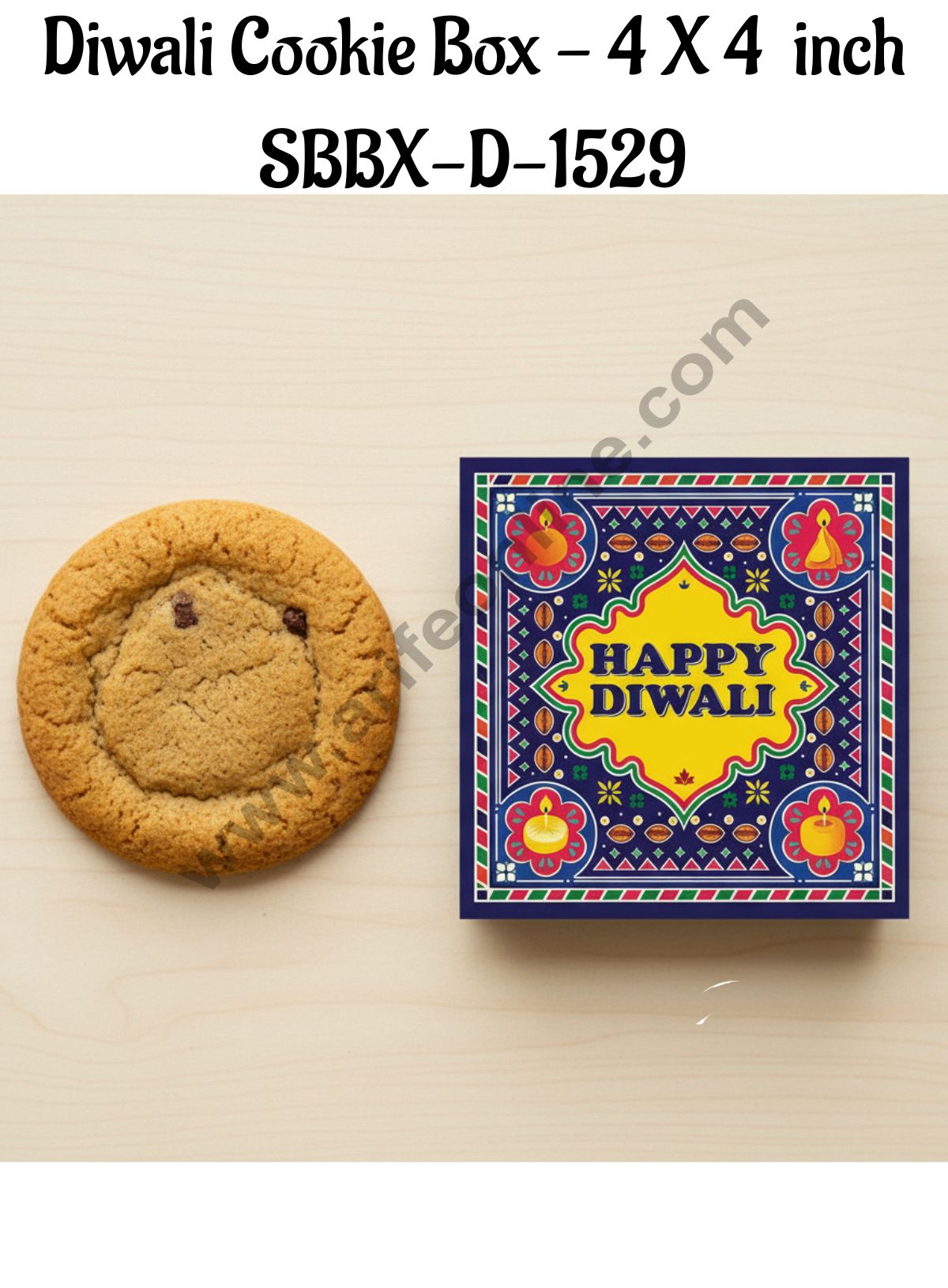 Cake Decor Blue Diwali Cookie Boxes Printed Box 4 X 4 Inch (Pack of 10pcs)