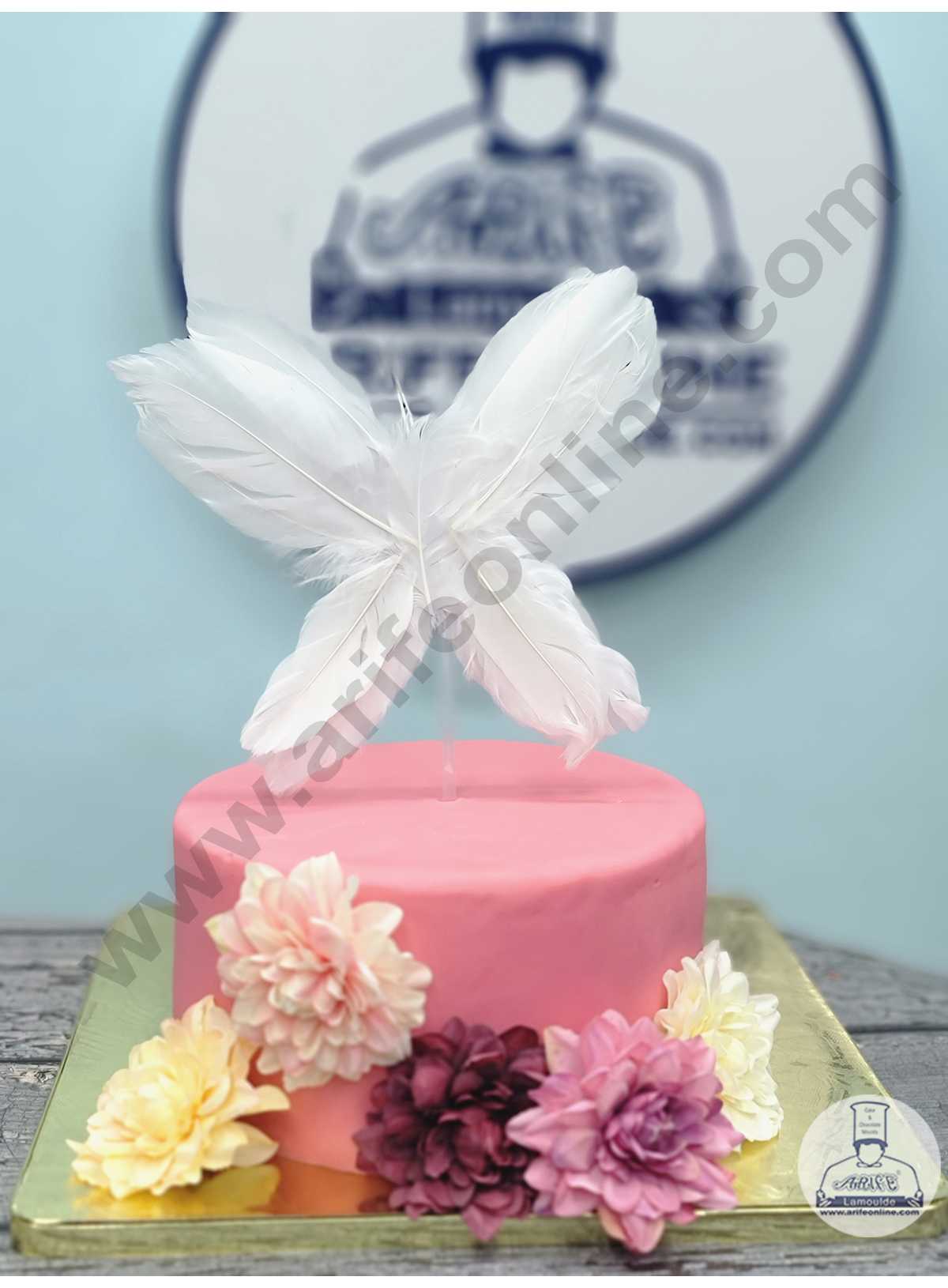 CAKE DECORβ’ Butterfly Feather Topper For Cake Decorations – White ( 1 pc Pack )